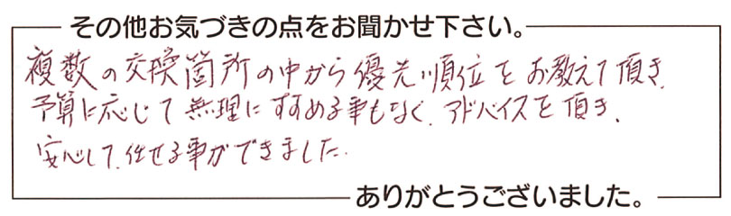 - 予算に応じてアドバイス頂き、