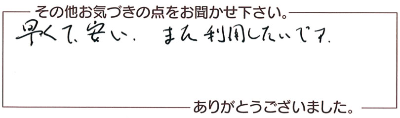 H.F.さま 早くて安い、また利用したいです。
