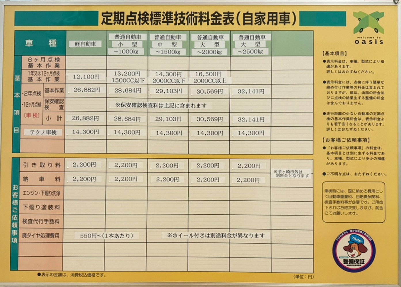 取扱車検メニュー | スーパーセーフティー車検、スーパーテクノ車検 |