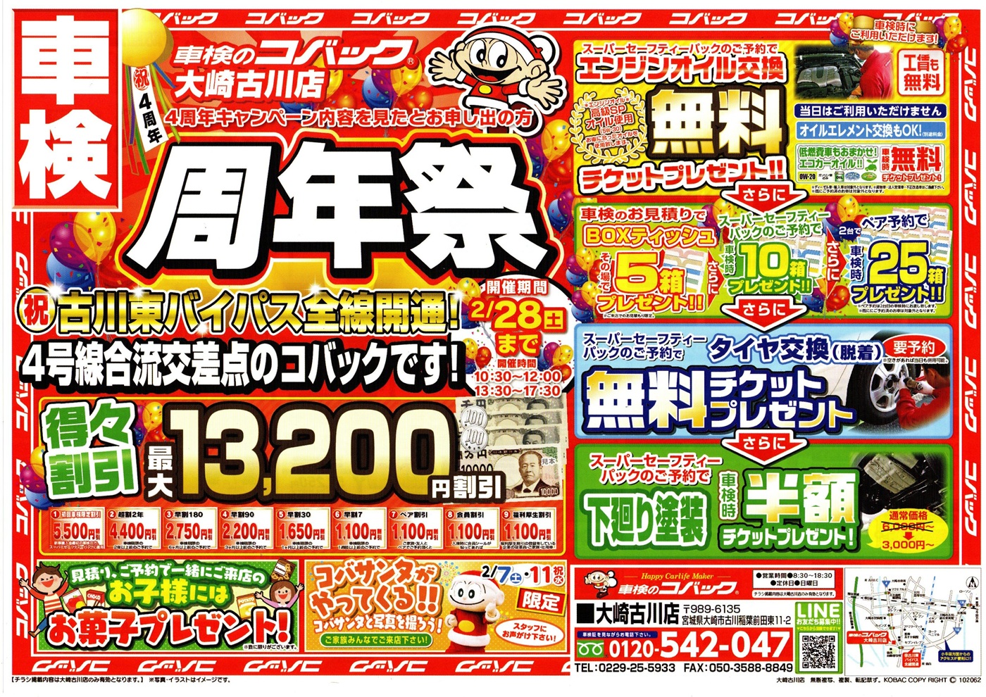 | 交通アクセス | 古川駅から車で7分 仙北自動車学校から車で1分 108号線4号線交差点(上古川)から南へ4キロ(7分) |