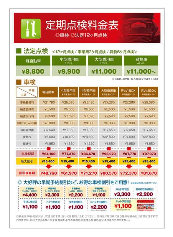 点検整備に関わる料金表